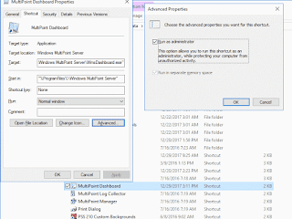 The simple solution is to change the properties on the Multipoint Dashboard shortcut in the Start Menu.
